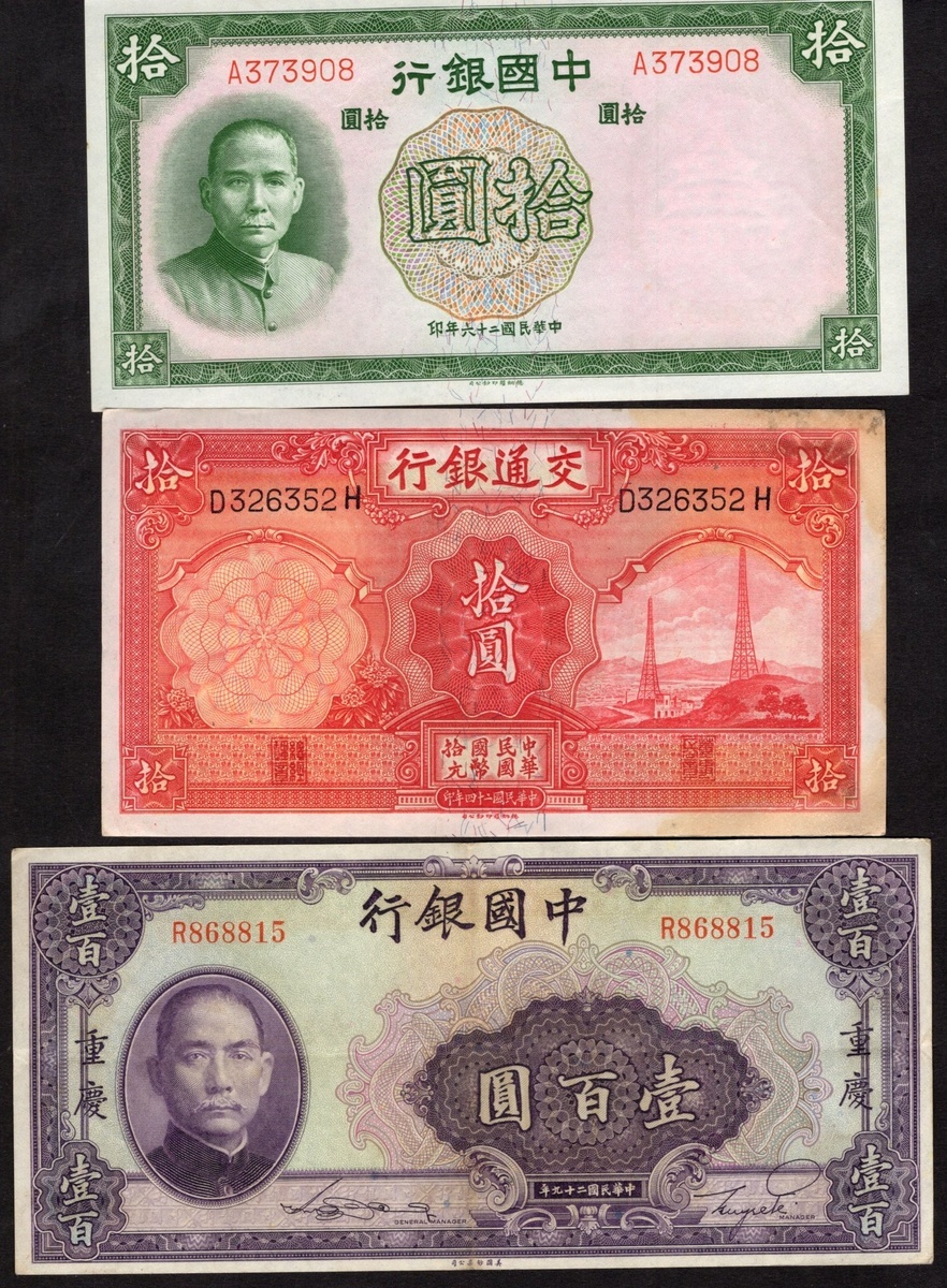 China. Large Lot of 1928-1940s Notes. Issues of the Central Bank of China, Bank of China, Bank of Communications and the Farmers Bank of China. Fine-Unc. [133+]