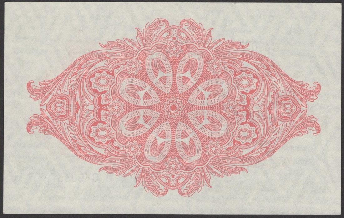 Falkland Islands. Government of the Falkland Islands. 5 Pounds. 10 April 1960. P-9a. No. C49033. Red on green. Elizabeth II portrait at right. Tiny nick upper edge. AU.