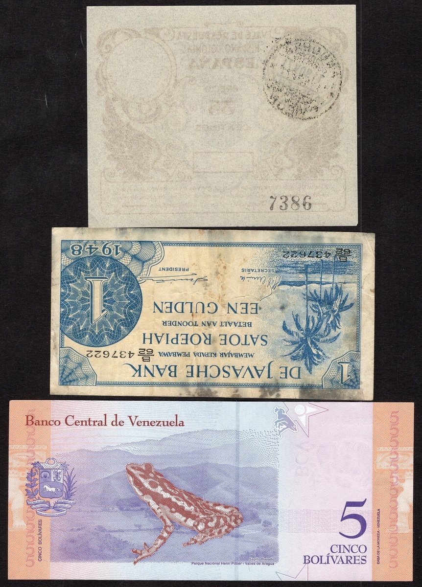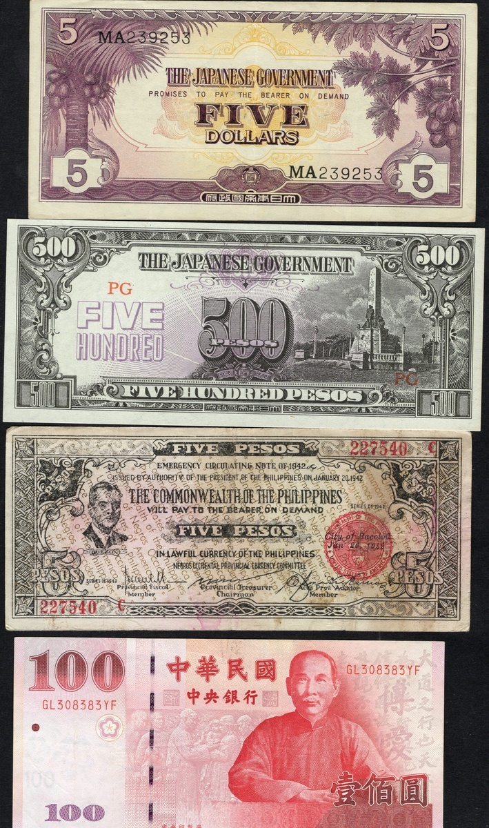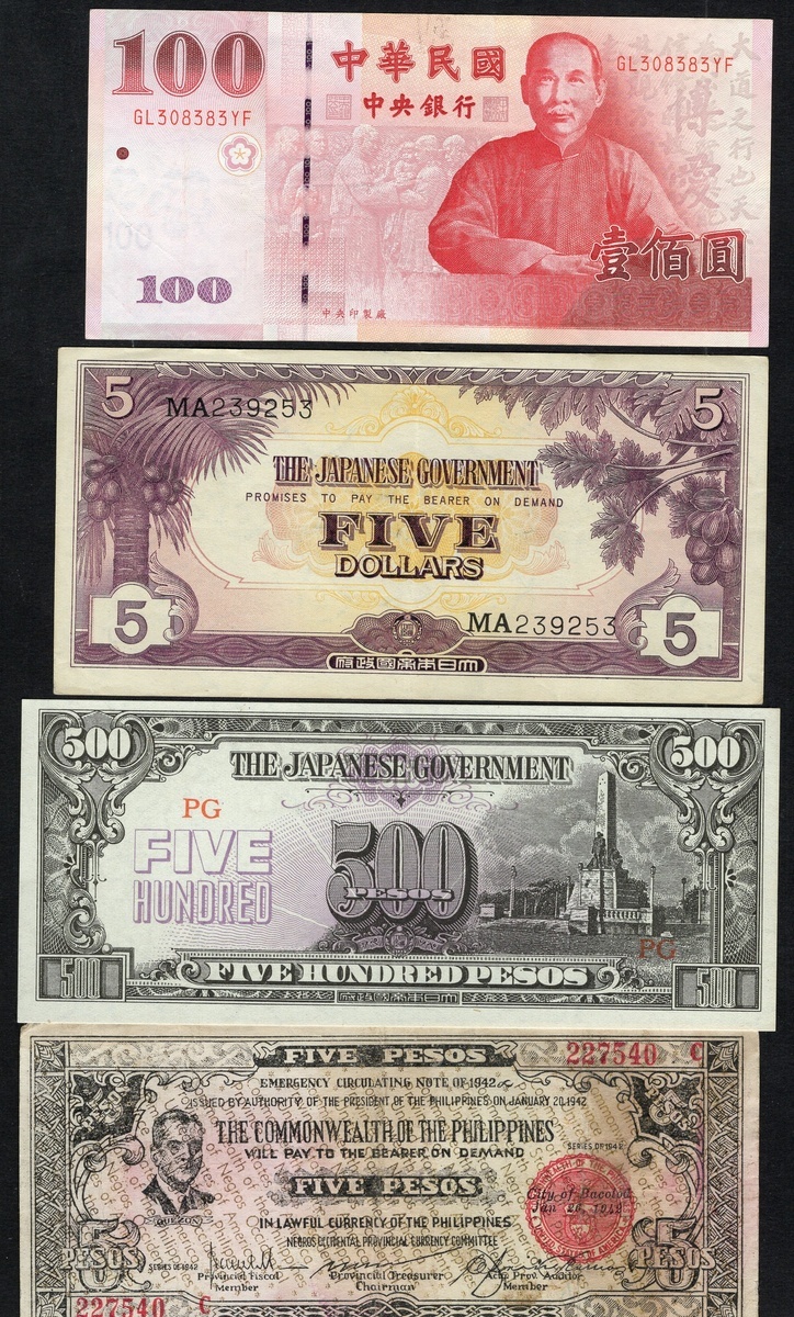 Worldwide Banknote Accumulation. 1910s-modern. Common banknotes of various countries, about a quarter of the lot being Japanese WWII occupation/invasion money; some stacks of Indonesian small change notes and a few other short stacks; also a small album of bank pack labels (Weimar Germany and others) and a few stray coupons, Canadian Tire Money, etc. VG-Uncirculated. [2,450+]