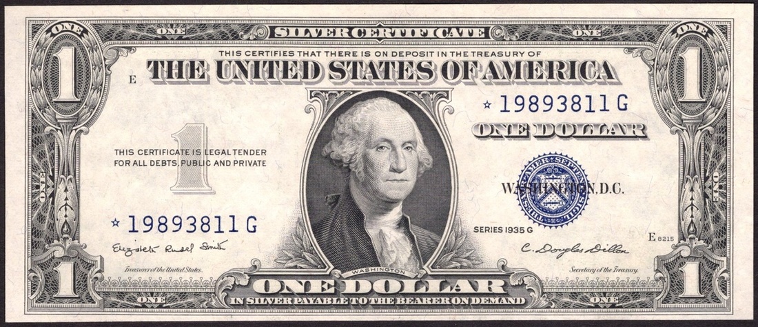 Fr.1617*. $1 Silver Certificate. 1935-G. Motto added. No. *19893811G. Uncirculated.