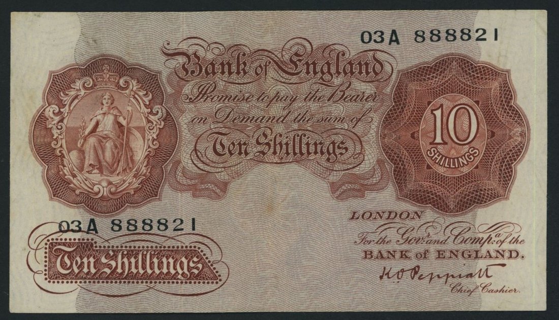 Bank of England, K. O. Peppiatt, replacement 10/- Shillings, ND (1948), last run serial number 03A 888821, (EPM B263, Pick 362c), very fine, minor staining, scarce