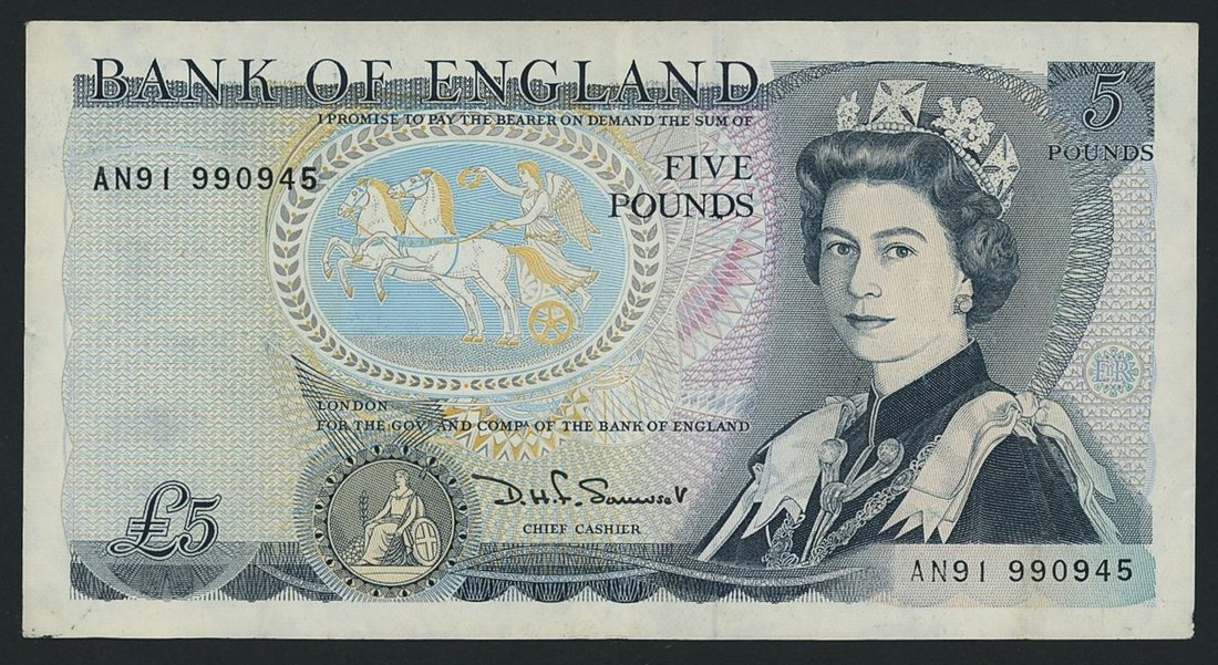 Bank of England, D. H. F. Somerset, experimental £5, ND (1980), first run serial number AN91 990945, (EPM B344, Pick 378), good fine, rare