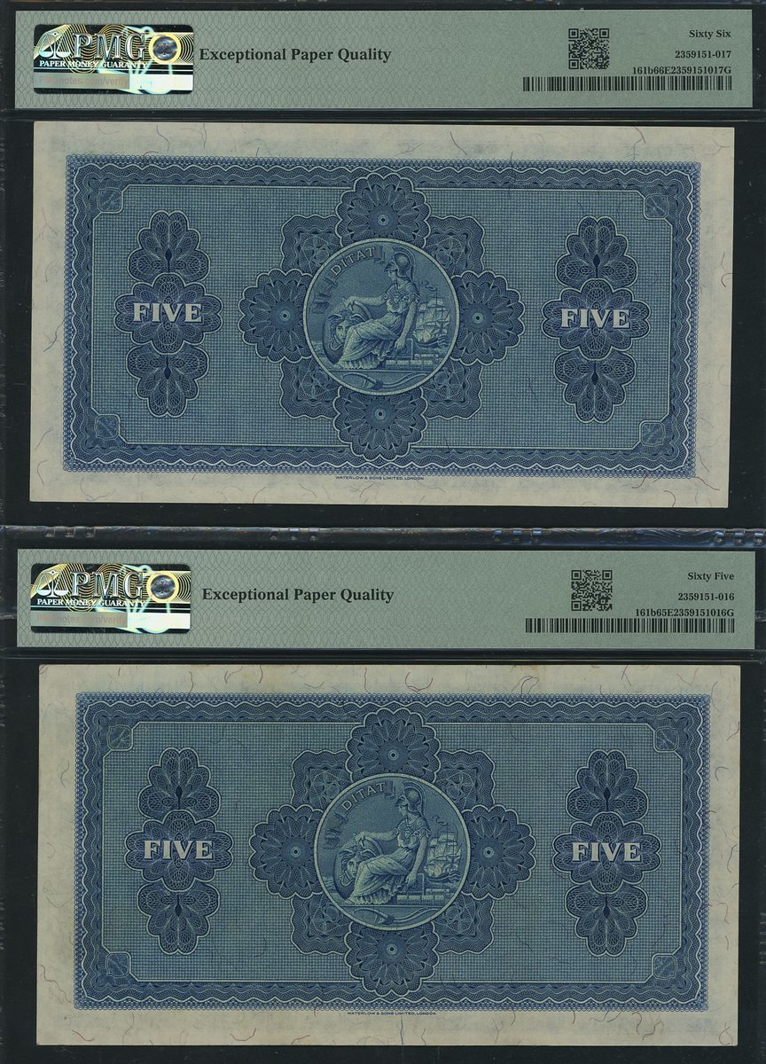 British Linen Bank, Scotland, [2 notes] £5, 20th September 1951, consecutive serial numbers K/9 35/499-500, (PMS BL 67d, Pick 161b), in PMG holders 66 EPQ Gem Uncirculated, 65 EPQ Gem Uncirculated (2 notes)