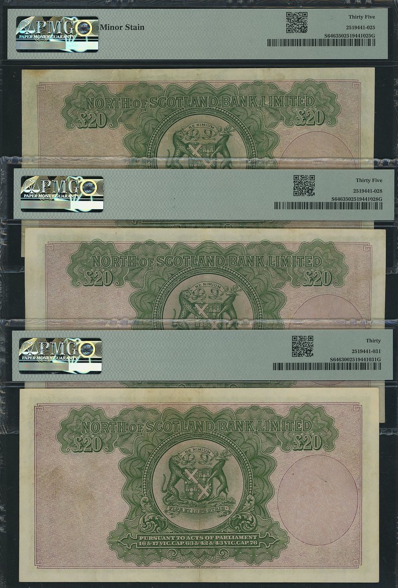 North of Scotland Bank, [3 notes] £20, 1940-49, serial numbers ET06737, JT07134, LT06291, (PMS NS 45a, 45b, Pick S646), in PMG holders [2] 35 Choice Very Fine, [1] 30 Very Fine (3 notes)