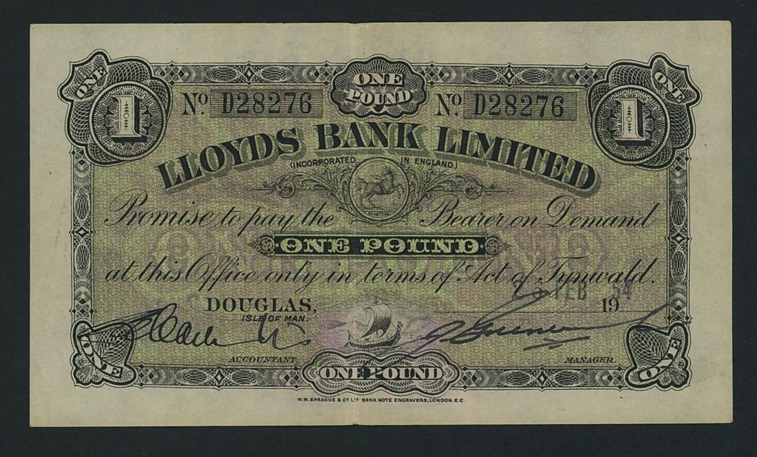 Lloyds Bank, Isle of Man, £1, 26th February 1954, serial number D28276, (IoMPM M338, Pick 23d), very fine