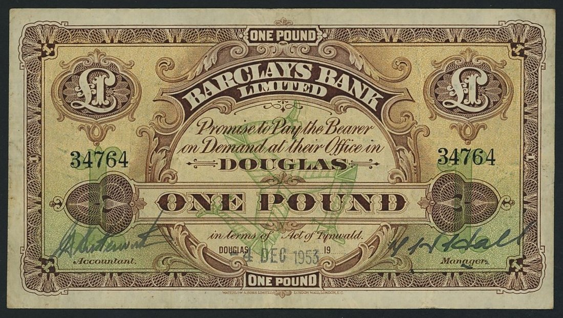 Barclays Bank, Isle of Man, £1, 4th December 1953, serial number 34764, (IoMPM M345), Pick 1b, good fine, scarce