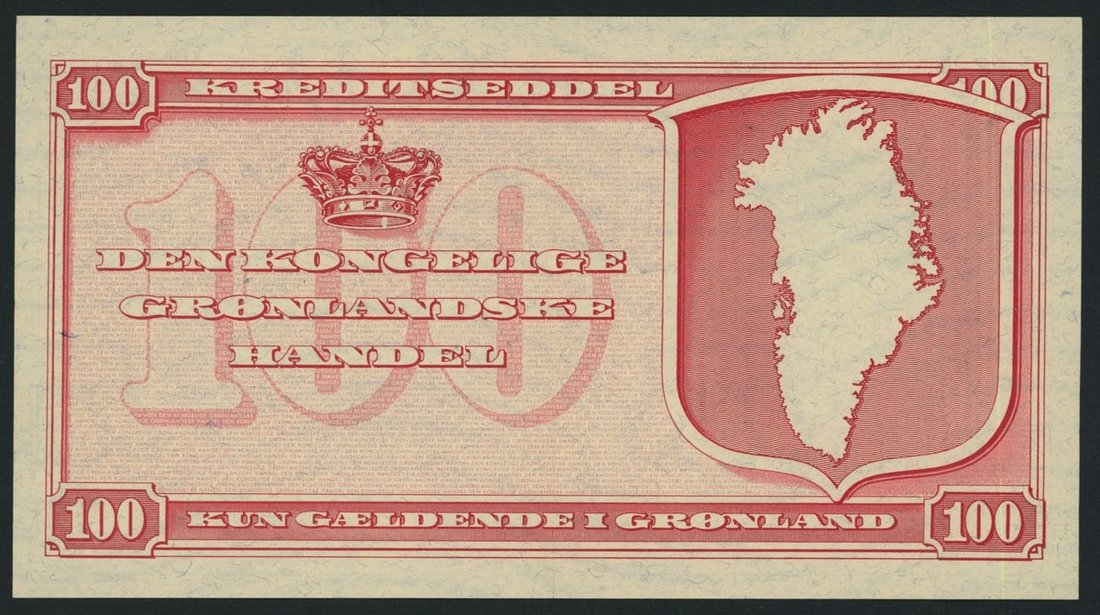 Credit Note, Greenland, 100 Kroner, 16th January 1953, serial number 0418060, Hans Christian Christiansen / Borge Ibsen signatures,