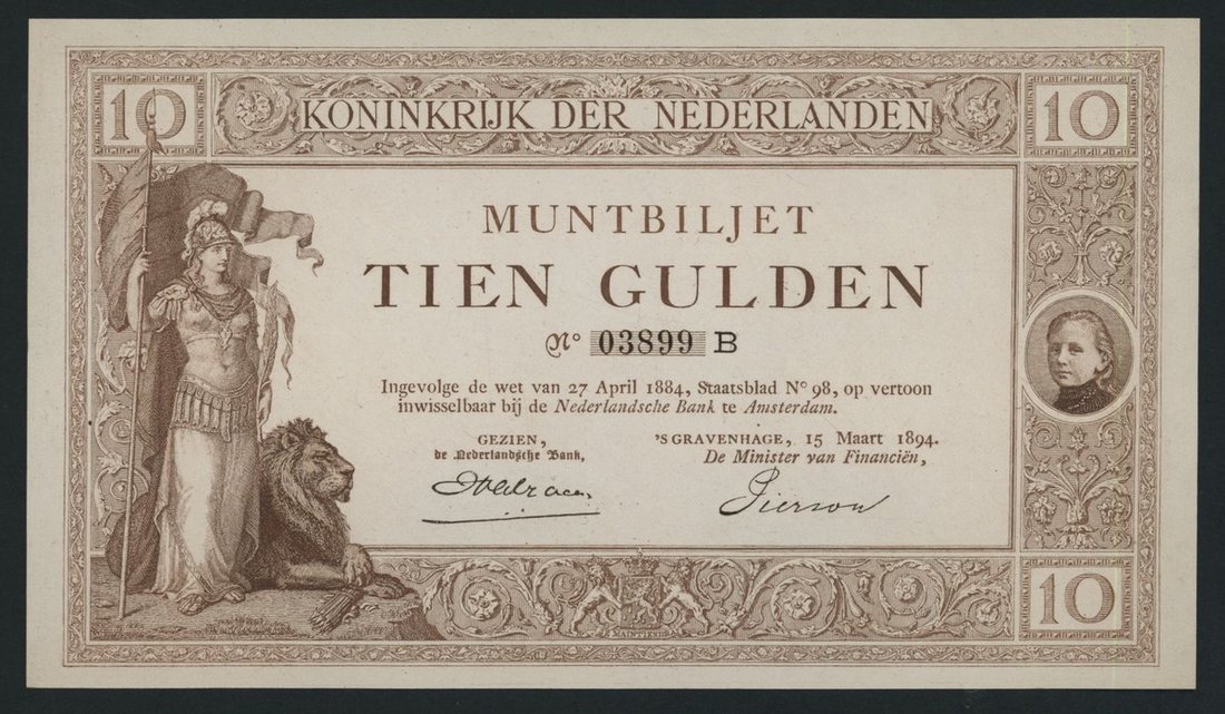 Koninkrijk der Nederlanden, proof 10 Gulden, 15th March 1894, serial number No. 03899 B,
