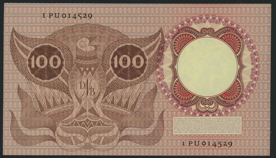 De Nederlandsche Bank, 100 Gulden, Amsterdam, 2nd February 1953, serial number 1PU014529, (Pick 88), uncirculated