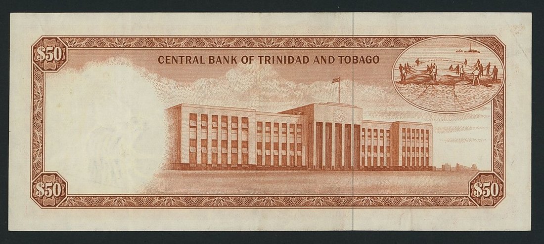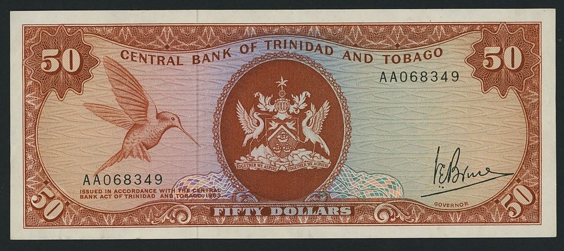 Central Bank of Trinidad & Tobago, 50 Dollars, 1963, serial number AA068349, (Pick 34a), extremely fine