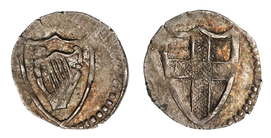 Commonwealth (1649-1660), Halfpenny, Tower, English shield in beaded circle, rev. shield of Ireland in beaded circle, 0.25g [3.85grns], 1h (ESC 2363; Bull 230; North 2730; S.3223), toned, good very fine for type