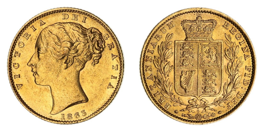 Douro Cargo | Victoria (1837-1901), Type IB, 'Shieldback' Sovereign, 1863 [Die 8], second young head left, WW incuse on truncation, rev. crowned 'normal' shield in wreath, edge milled, 7.96g, 6h (EGC II, 1162; Bentley -; MCE 524; Marsh 48; S.3853), scattering of light contact marks, with a pleasing lustrous bloom, extremely fine