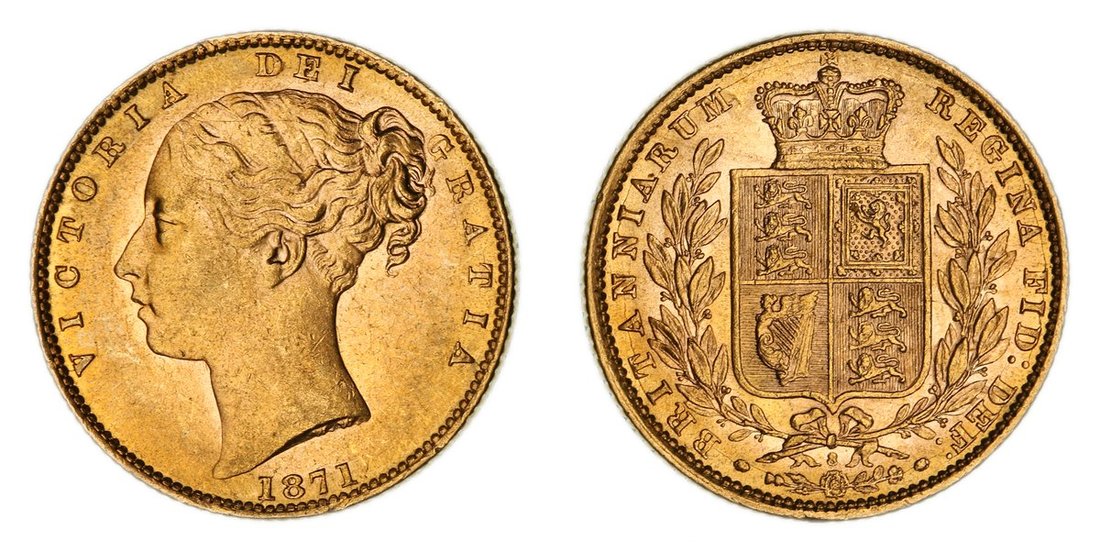 Douro Cargo | Victoria (1837-1901), 'Shieldback' Sovereign, 1871 [Die 8], third young head left, W.W. raised on truncation, rev. crowned 'normal' shield in wreath, edge milled, 7.97g, 6h (EGC II, 1171; Bentley -; MCE 531; Marsh 55; S.3853B), light scattering of contact marks to obverse, yet with a flashy lustre, most pleasing to the reverse, extremely fine