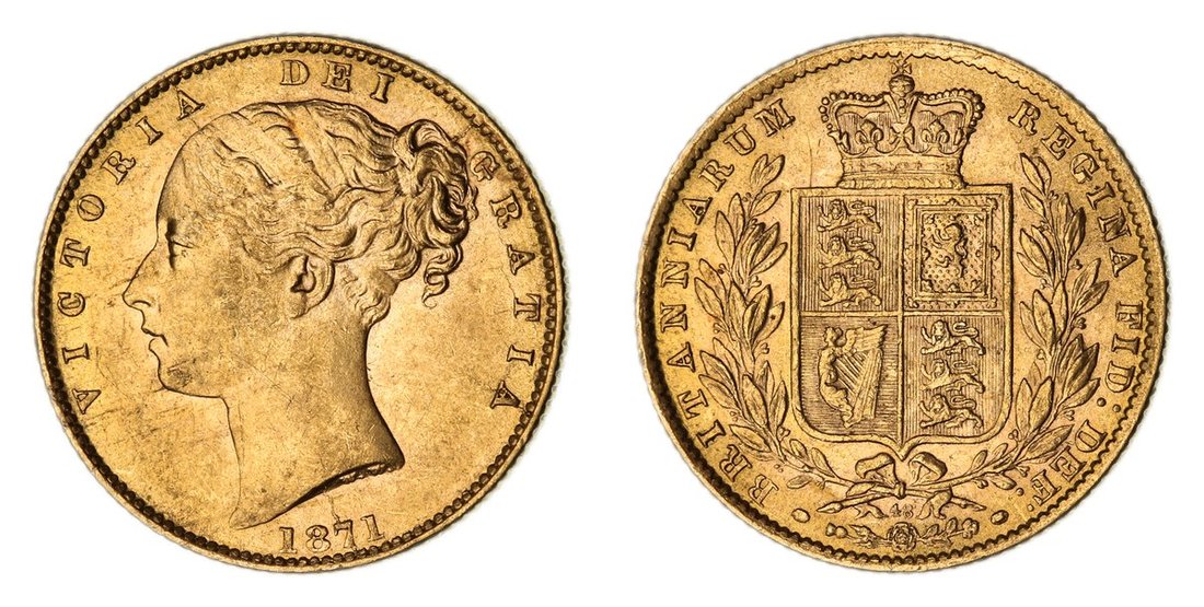 Douro Cargo | Victoria (1837-1901), 'Shieldback' Sovereign, 1871 [Die 48], third young head left, W.W. raised on truncation, rev. crowned 'normal' shield in wreath, edge milled, 7.98g, 6h (EGC II, 1171; Bentley -; MCE 531; Marsh 55; S.3853B), some wispy hairlines scratches to obverse, hairline die flaw through date, with a pleasing lustre, extremely fine