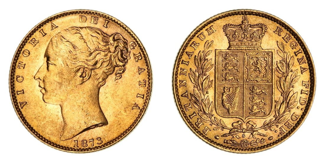 Douro Cargo | Victoria (1837-1901), 'Shieldback' Sovereign, 1873 [Die 3], third young head left, W.W. raised on truncation, rev. crowned 'normal' shield in wreath, edge milled, 7.97g, 6h (EGC II, 1175; Bentley -; MCE 535; Marsh 57; S.3853B), bagmarks to neck and GRATIA double struck, pleasing lustre to reverse, extremely fine