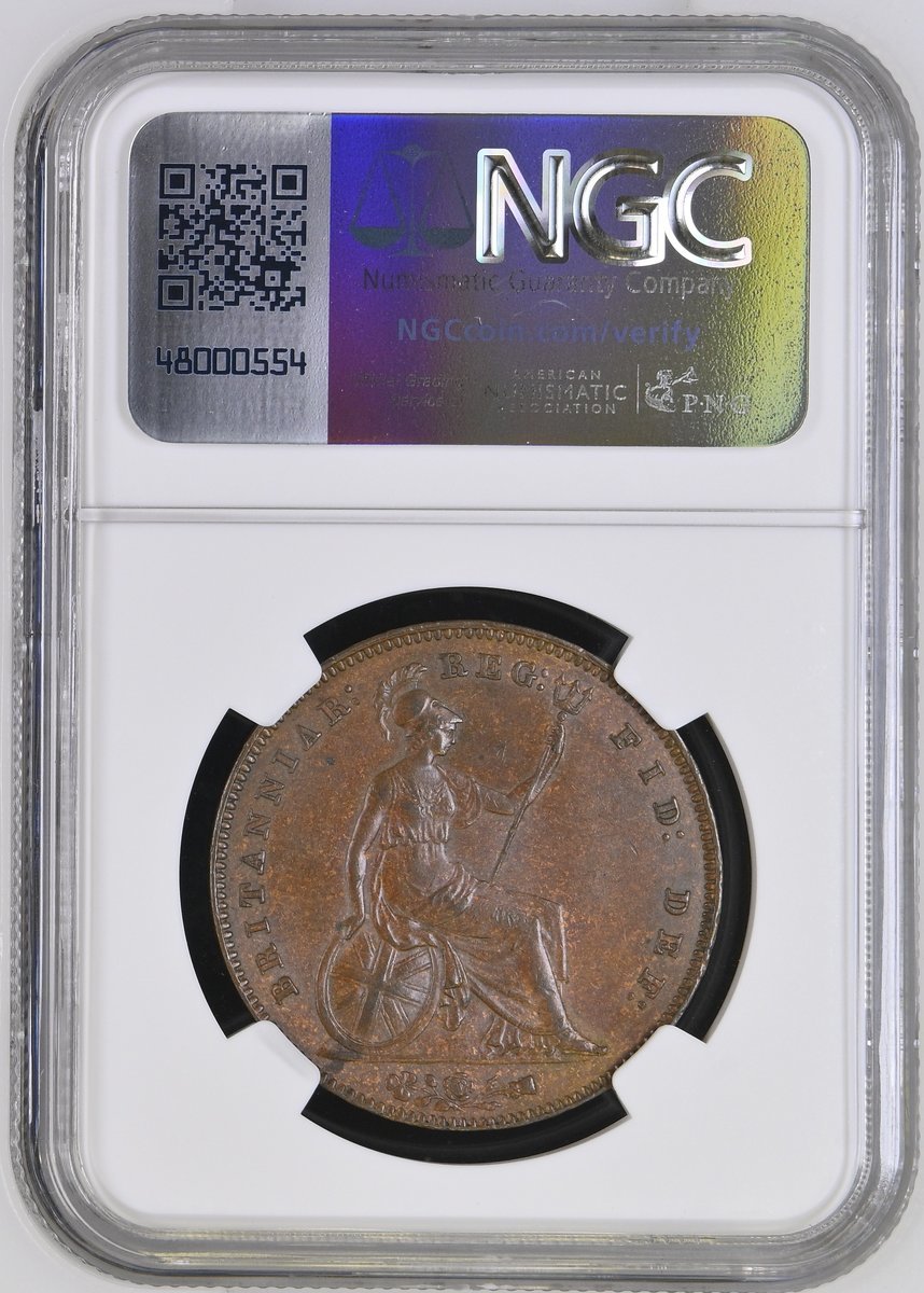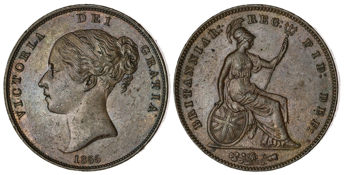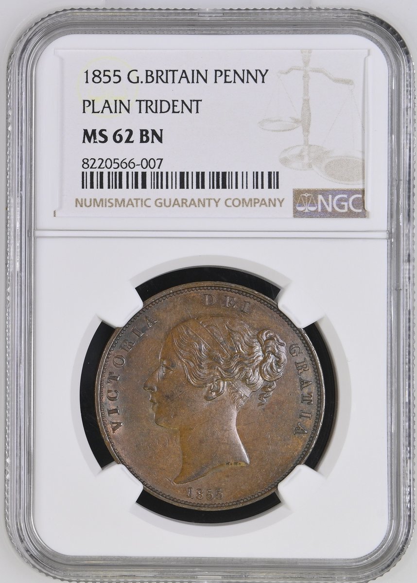 NGC MS62 BN | Victoria (1837-1901), Penny, 1855 PT, young filleted head left,