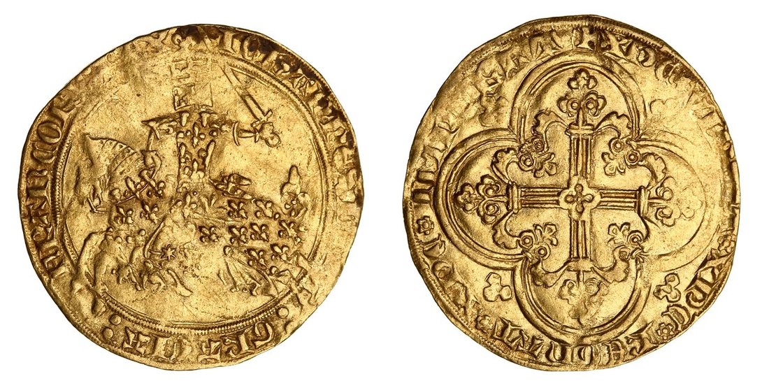 France, Jean II 'le Bon' (1350-1364), Franc a Cheval, struck 5 December 1360, IOHANNES : DEI : GRATIA FRANCORV : REX, armoured king on galloping horse left, sword raised, rev. + XPC * VINCIT * XPC * REGNAT * XPC * IMPERAT, cross fleuronée in quadrilobe, 3.77g, 2h (Dupl. 294; Fb. 279), light crease through flan and soft to partially clipped edges, good fine