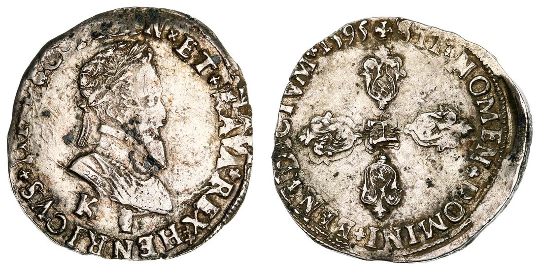 France, Henry IV (1589-1610), Half-Franc, 1595 K, Bordeaux, Type II, laureate and armoured bust right, rev. cross fleuree, H at centre, 7.09g, 9h (Dupl. 1212; KM 14), some metal flawing to obverse, reverse off-centre and with doubling, about very fine for type
