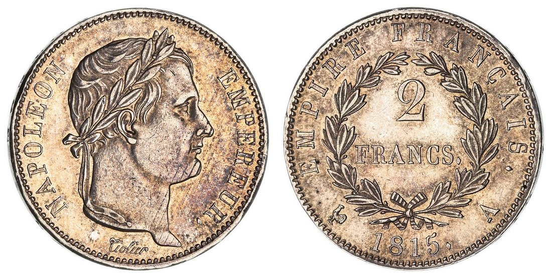 France, Napoleon I, Hundred Days (March-June 1815), 2-Francs, 1815 A, Paris, laureate bust right, rev. value in wreath, edge incuse lettered upwards, 10.01g, 6h (Gad. 510; KM 703), adjustment marks to obverse, wiped and retoned, lustrous to reverse, very fine and one-year of issue type, one of 6,777 struck, thus scarce