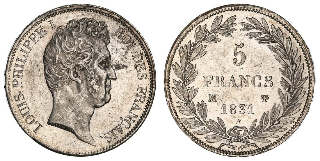 France, Louis-Philippe I (1830-1848), 5-Francs, 1831 MA, Marseille, bare head right, name on truncation, rev. value in wreath, edge incuse lettered upwards, 25.00g, 6h (Gad. 676; F. 315/23; KM 735.10), with surface and scuffing marks, otherwise with a pleasing mint bloom, pleasing very fine, better in parts