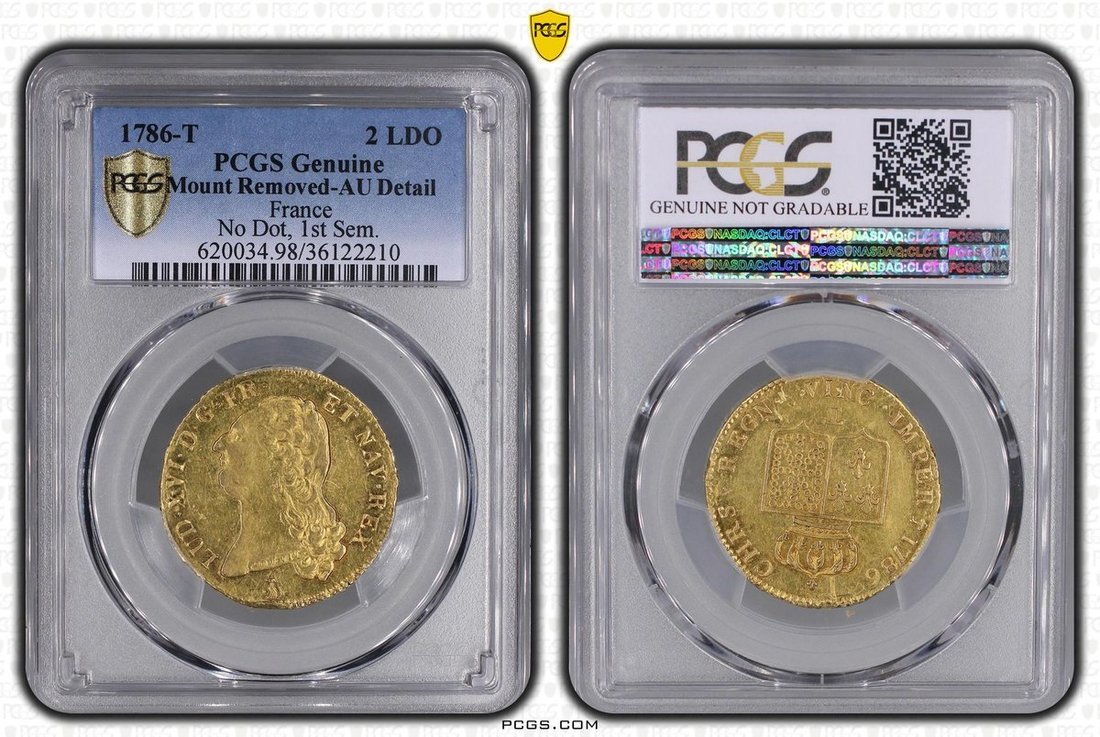 PCGS AU | France, Louis XVI (1774-1793), Double Louis d'Or, 1786-T, Nantes, first semester, no dot, young head left,
