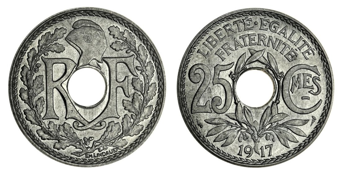 PCGS MS67 | France, Third Republic (1870-1940), 25-Centimes, 1917, with dash (Le Franc 170.5; Gad 379; KM 867), choice mint state, the joint finest and the key date with only 65,038 pieces reportedly struck, in early PCGS holder, graded MS67 (Cert. #14978852)