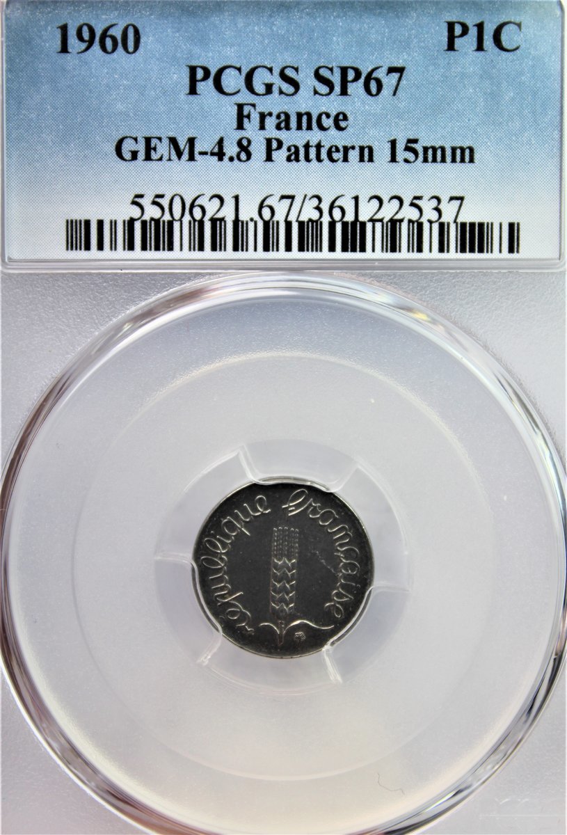 PCGS SP67 | France, Fifth Republic (1958-Present), Pattern Centime, 1960, in stainless steel, unsigned, 15mm. (Gad 91; Maz. 2845; GEM 4.8), very rare, in PCGS holder, graded SP67 (Cert. #36122537)