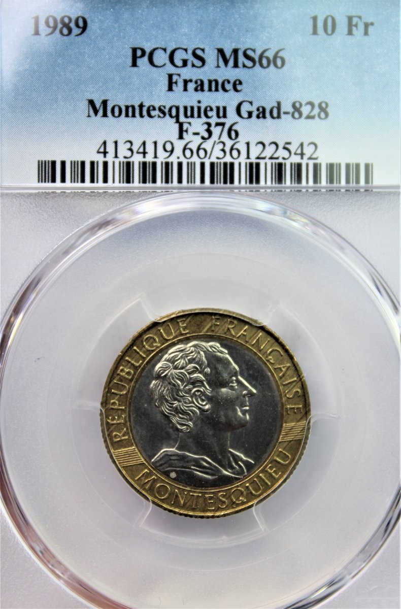 PCGS MS66 | France, Fifth Republic (1958-Present), 10-Francs, 1989, Tricentenary of the Birth of Montesquieu (Le Franc 376; Gad 828; KM 969), only 15,000 pieces minted, in PCGS holder, graded MS66 (Cert. #36122542)