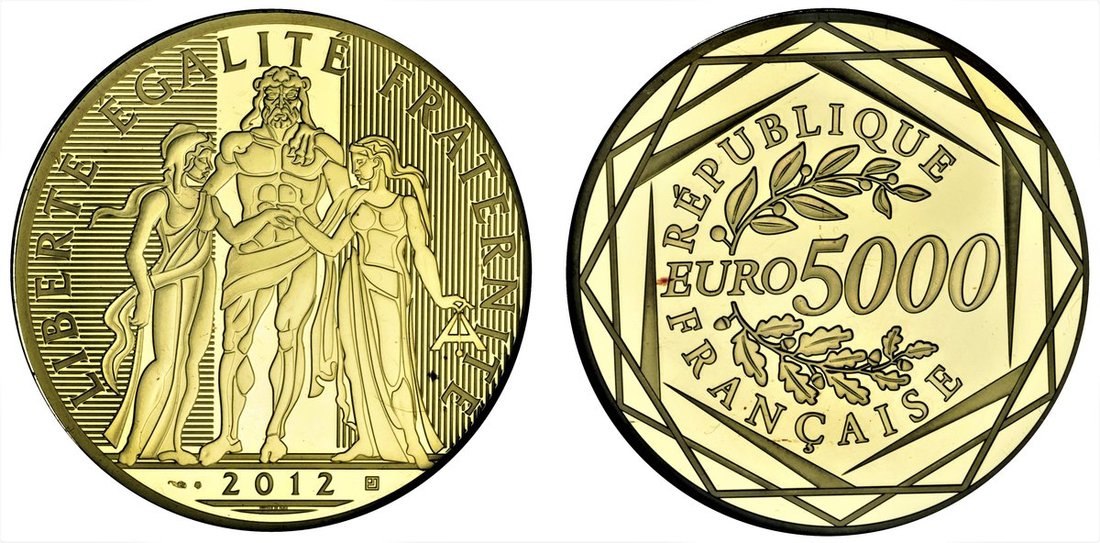 France, Fifth Republic (1958-Present), Gold 5,000-Euros, 2012, brilliant uncirculated, only 2,000 struck, in fitted case of issue