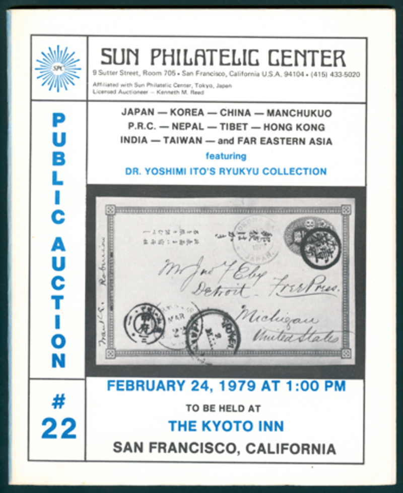1979 (February 24) Far Eastern Asia, Sun Philatelic Center (San Francisco), includes an important section of China and Foreign Post Offices and Dr Yoshimi Ito's Ryukyu Collection.