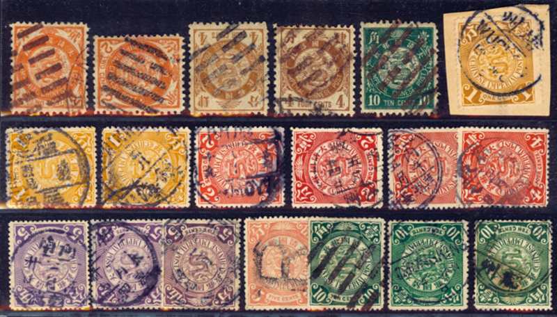 Group of 19 Coiling Dragons, including five Japan Prints used with pa kua cancels and fourteen CIPs with various good markings (19).