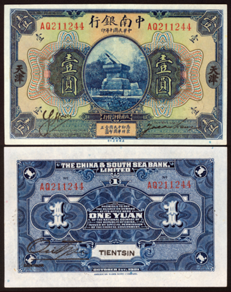 1921 The China & South Sea Bank 1 Yuan Tientsin, UNC.