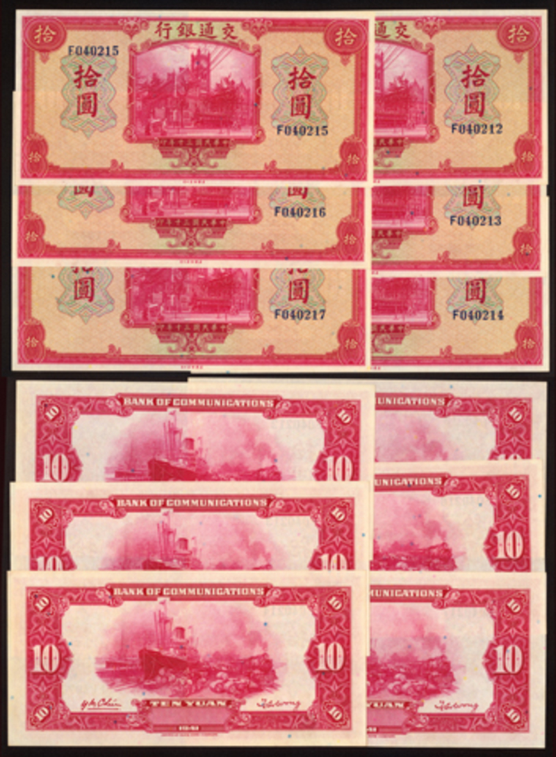 1941 Bank of Communications 10 Yuan, group of six with consecutive serial numbers, UNC (6).