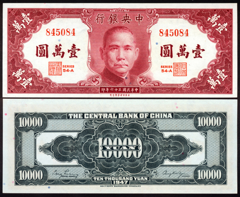 1947 The Central Bank of China 10000 Yuan, two examples, both PMG GU65 (2).