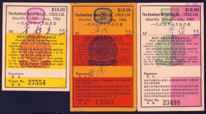 1964-66 Group of Three Monthly Tickets, rare and fine.