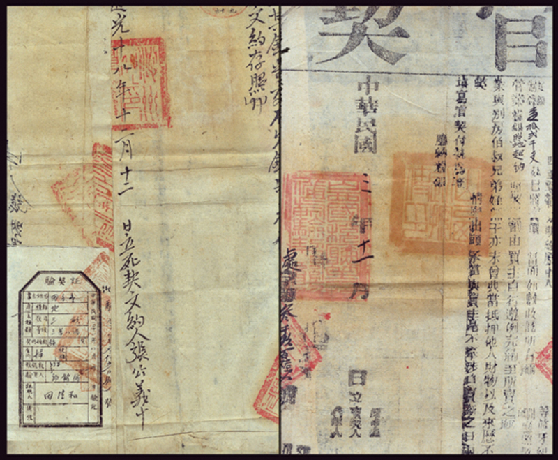 1914 Early Republic of China Land Deed, complete with original 1838 (Dao Guang 18th Year) deed and a 1942 notory stamp, fine.