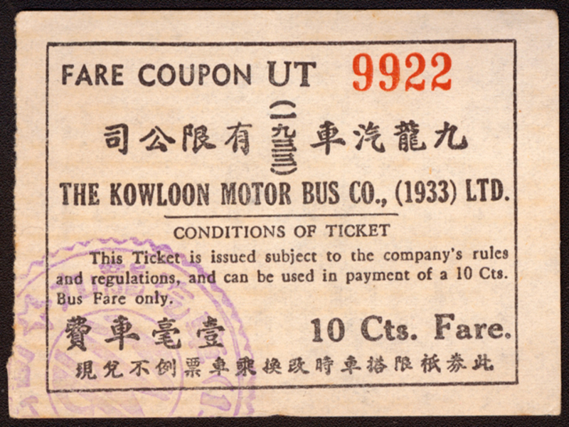 1966 Fare Coupon, serial number UT9922, can be used in payment of a 10 Cts bus fare.