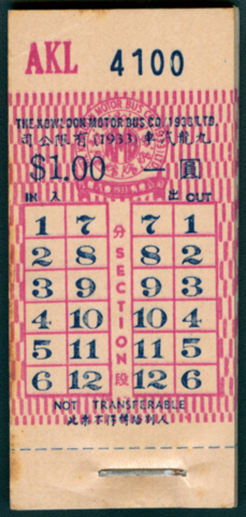 1970's Sections Bus Tickets, pack of 80 with original staple at bottom, serial numbers AKL4100-AKL4179, very fine and rare.