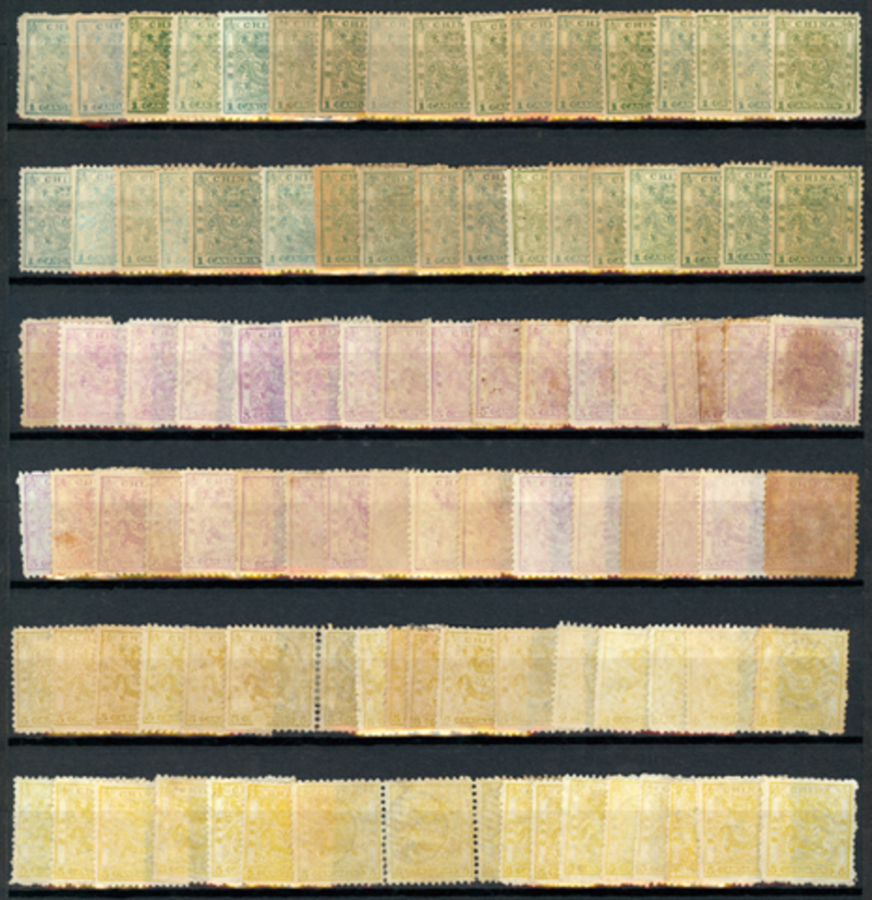 Small Dragons Selection, group of 34 complete sets of 3, condition mixed, repaired, regummed, etc.