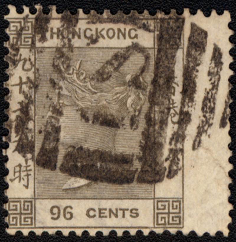1863-74 QV 96c Brownish Grey (Yang 19), right margin example used with Shanghai "S1" obliterator in black.