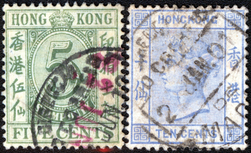 1908 Numeral Design 5c Stamp Duty (Crown Block CA watermark), canceled by Macau cds, unusual and rare postal usage.