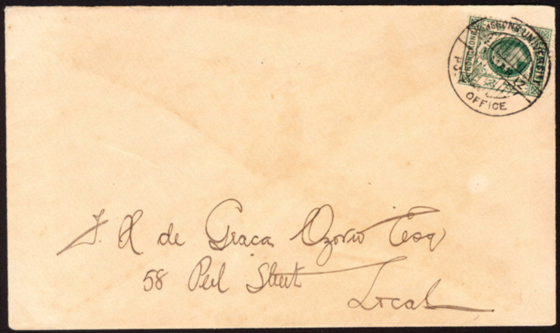 1912 (March 14) Hong Kong University Post Office Cover, franked with KEVII 2c, tied by special commemorative chop.