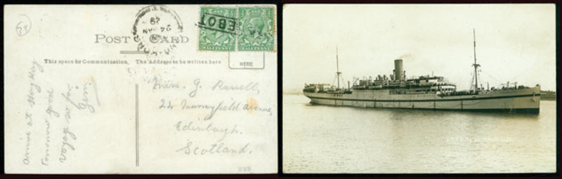 1929 (January 24) Picture Post Card to Scotland, franked with GB KGV halfpenny(2), tied by "Paquebot" handstamp, Hong Kong cds alongside.