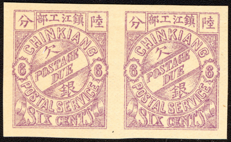 1895 Postage Due 6c Plum (SG D37a), horizontal pair with imperforate variety, unused.