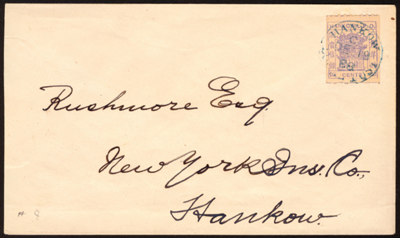 1893 (December 19) Plain Local Cover, franked with 20c, tied by Hankow Local Post cds, year digits inverted variety.