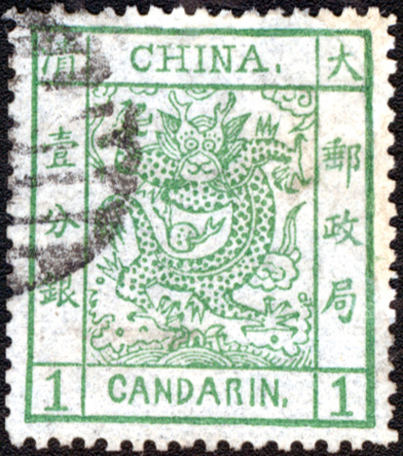 1878 Customs Large Dragons, thin paper printing, 1ca Green (Chan 1; Scott 1), used.