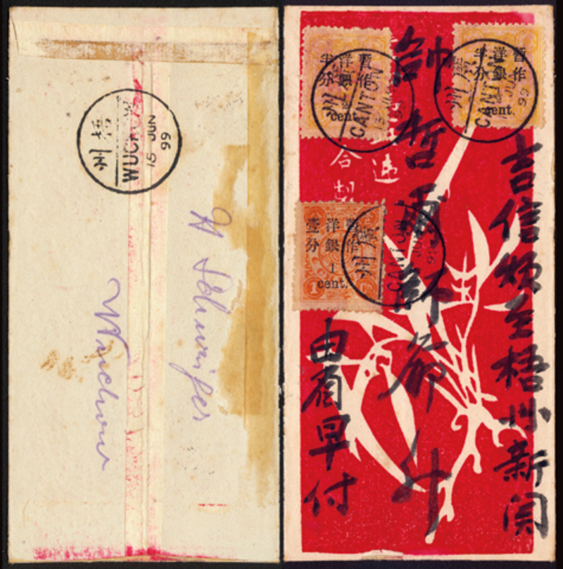 1899 (June 13) Decorated Native Cover to Wuchow, franked with dowager surcharges, all tied by Canton bilingual daters, Wuchow bilingual arrival dater on reverse.