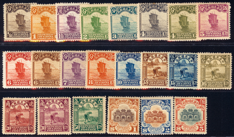 1923-33 Second Peking Print Junk Issues (Chan 249-270), complete mint short set of 22, value to $5, many UM.