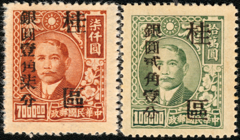 1949 Kwangsi Silver Yuan Surcharges (SG 1314-25), on various Dr SYS issues, set of 12 values, unused.