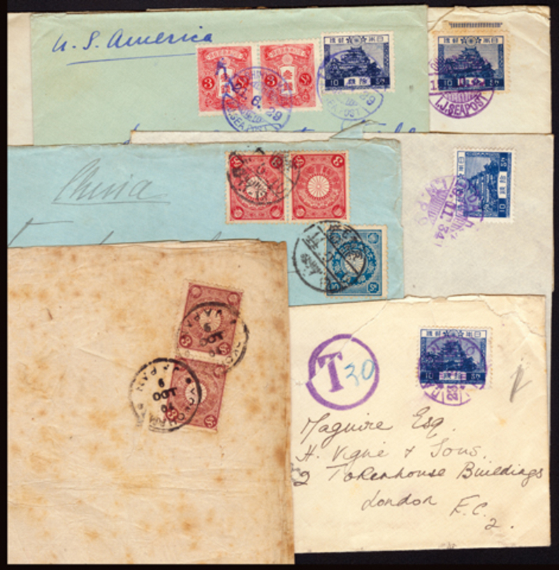 JAPAN: 1904-35 Group of Six Covers, including Dairen to Germany & England with postage due, incoming to Hankow and Tsingtau, seapost to USA, one from Tientsin, fine.